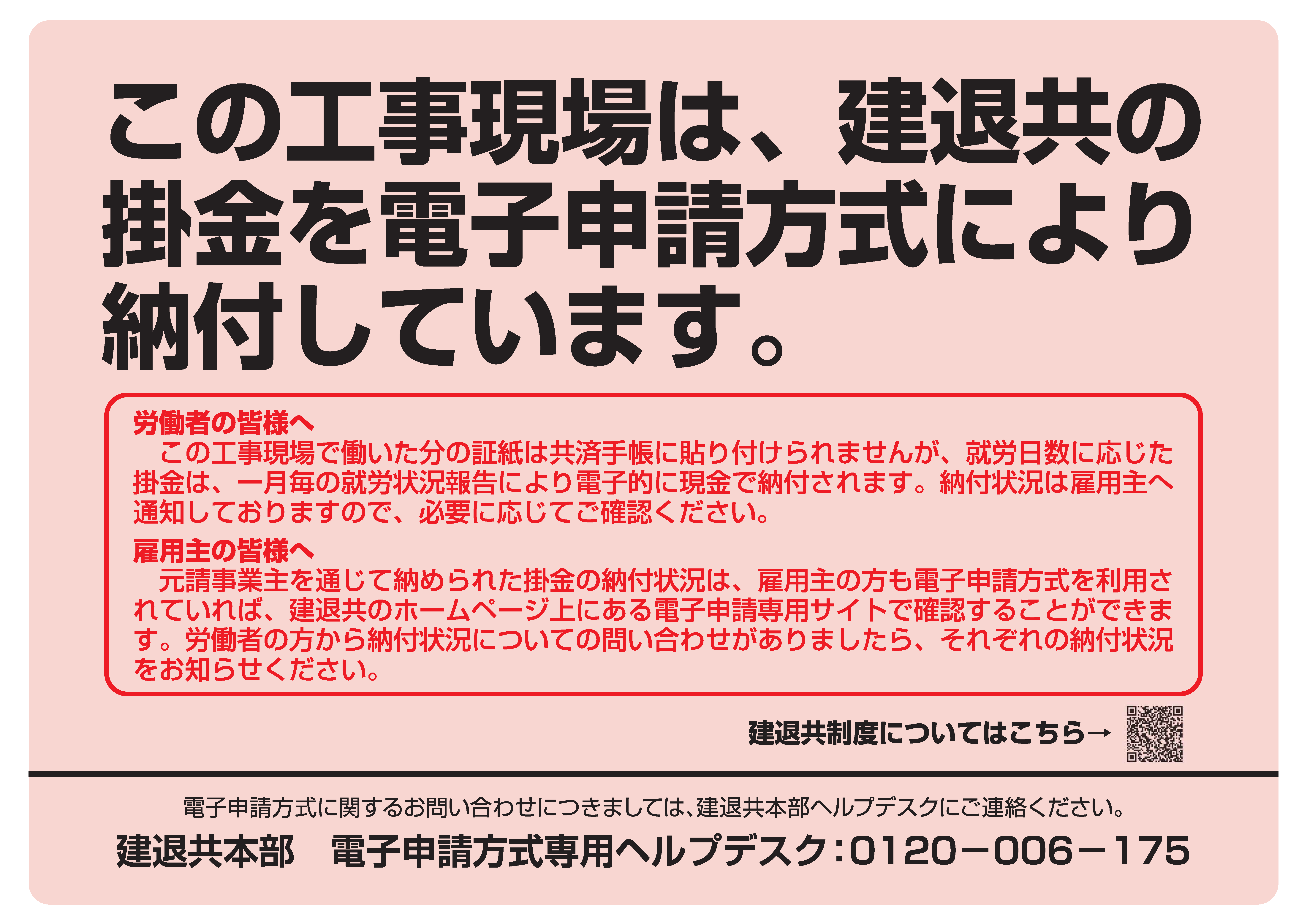 電子申請方式を採用した工事現場には、『1』の現場標識に加えて掲示してください。