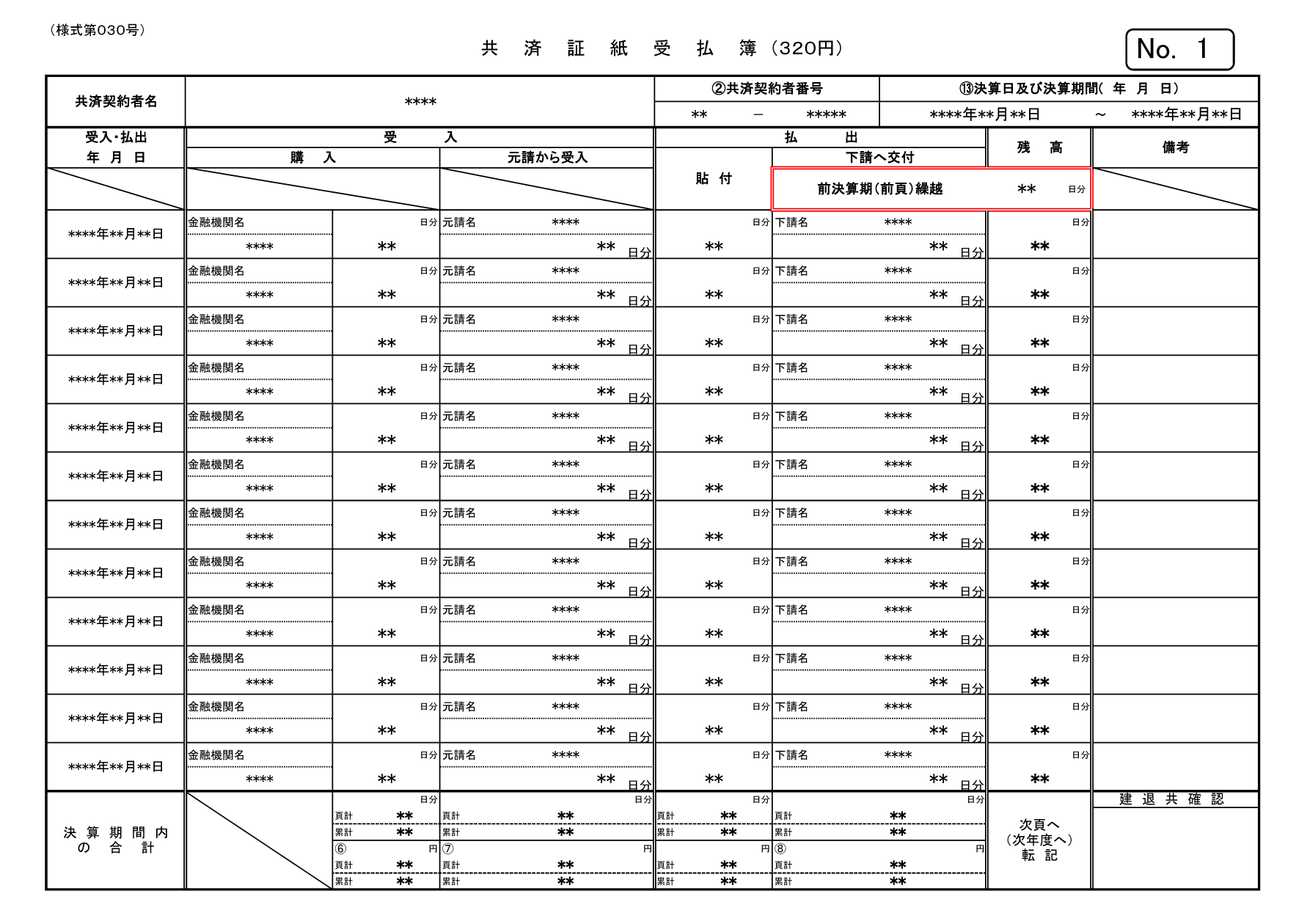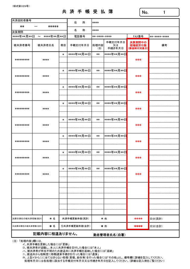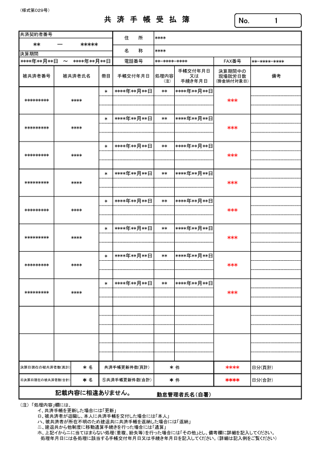 - 共済手帳受払簿(様式第029号)