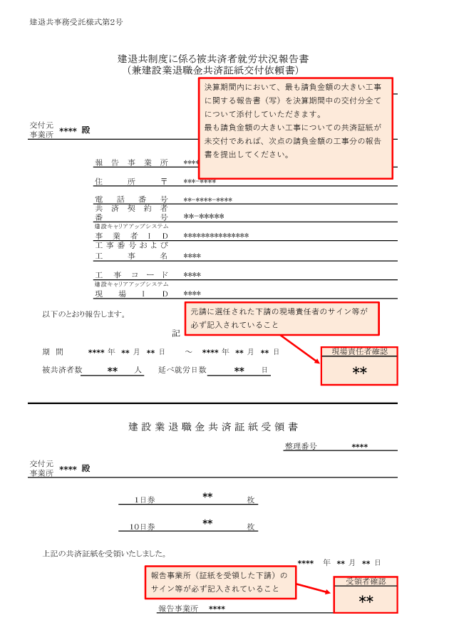 元請のみ提出が必要な提出書類- 建退共制度に係る被共済者就労状況報告書