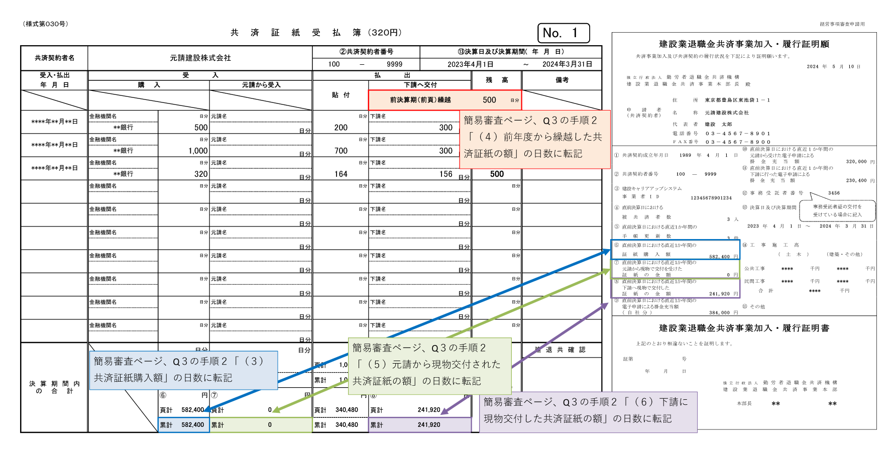 - 共済証紙購入額等 : 共済証紙受払簿、掛金収納書等で確認
